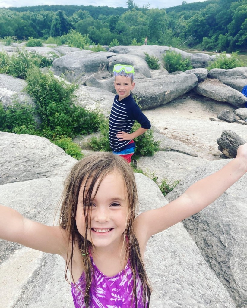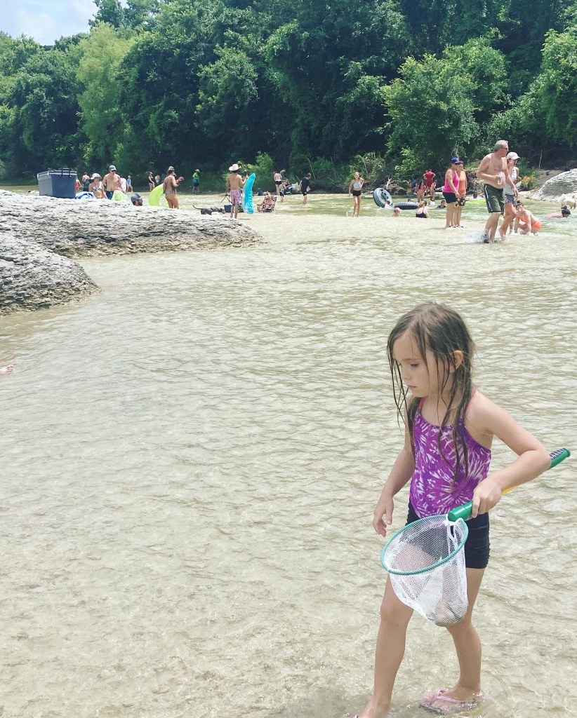 We found this area of the Paluxy River cleaner and flowing faster than the areas at Dinosaur Valley State Park. And the varying depths of water were fun to play in! The water levels often change depending on the weather–and may not be safe after recent downpours.