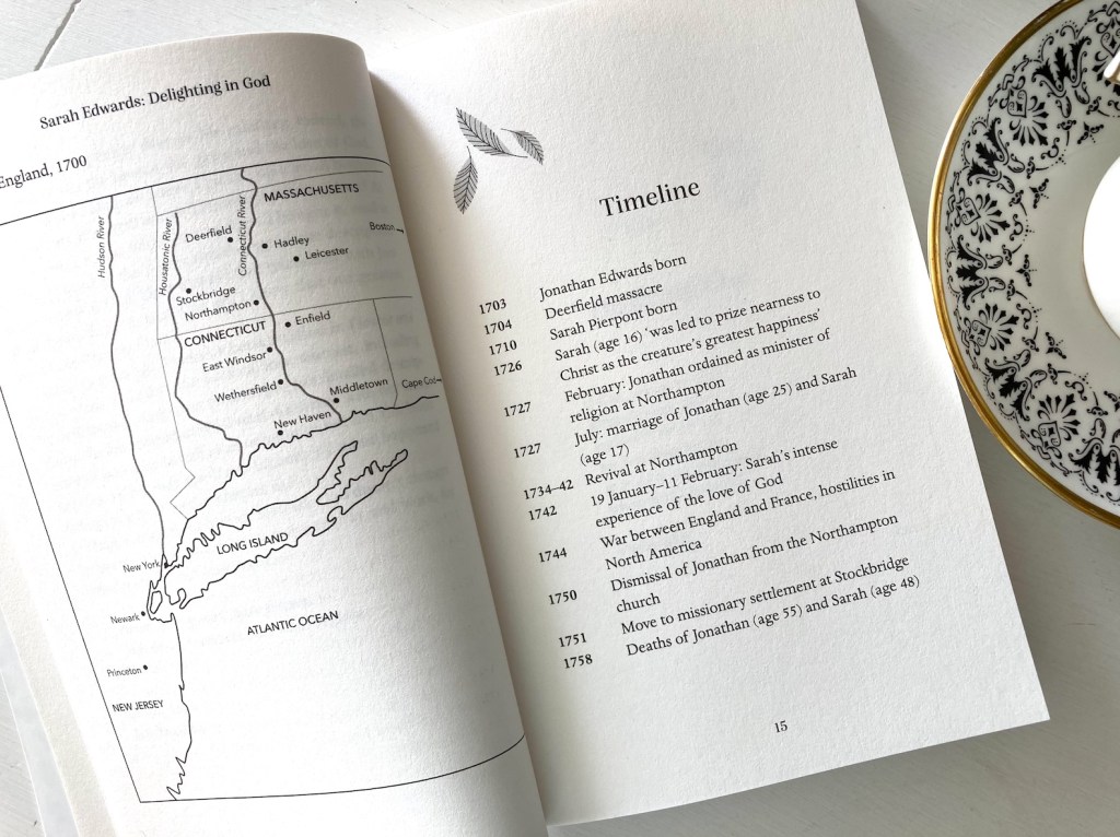 The chapters in Sarah Edwards: Delighting God are short, and each chapter ends with a few reflection questions. I also appreciate the extra resources included: a small map, timeline, and list of resources for further reading.