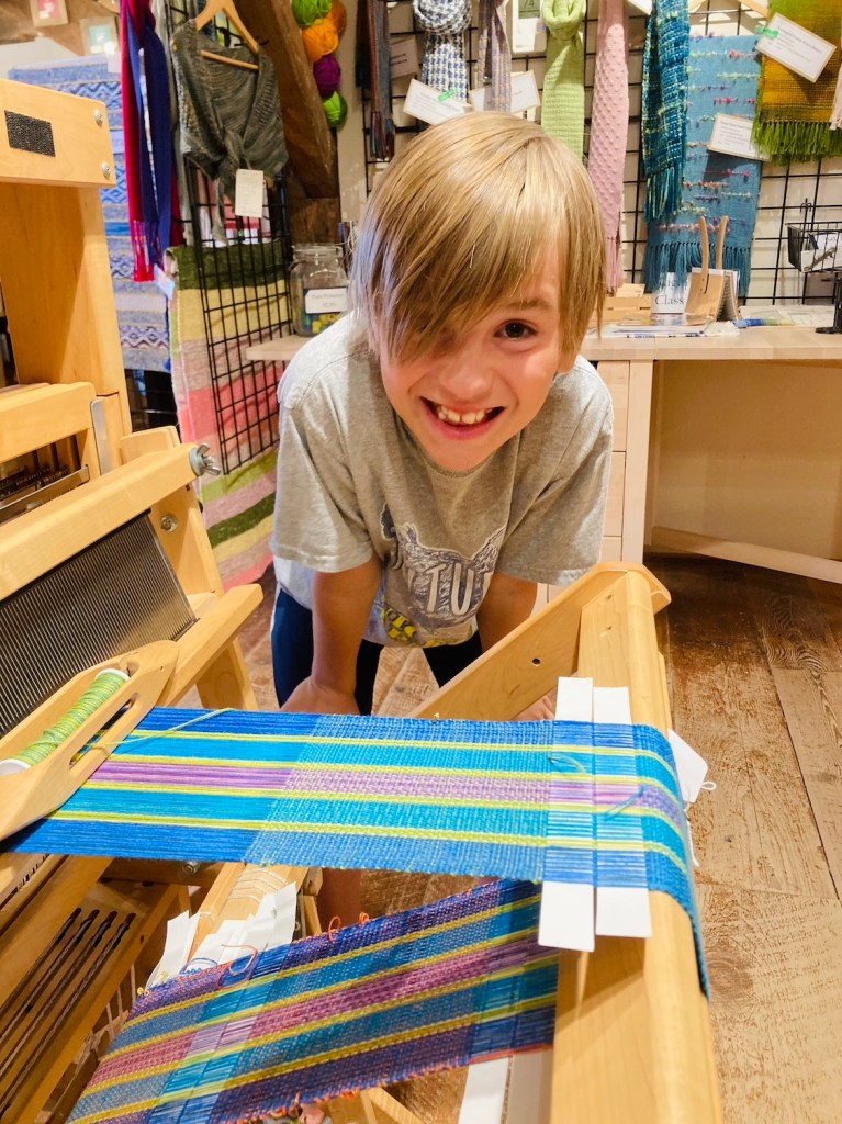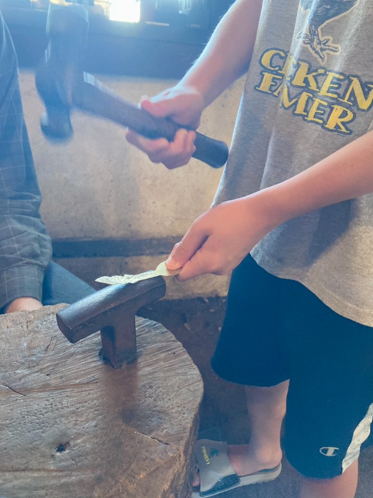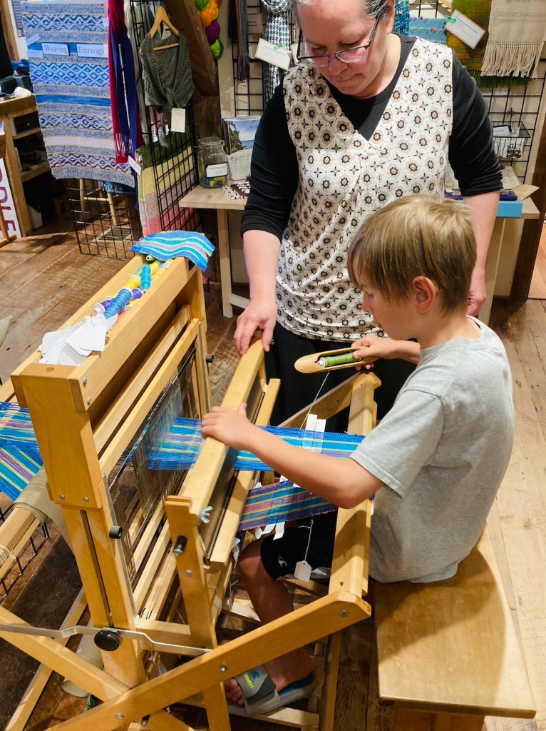 While the entrance is free, there are multiple gift shops with hand-made items and several locations with paid activities for kids. Our son enjoyed weaving a coaster on a loom and making a brass spoon at the forge.