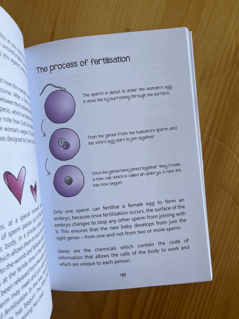I also really appreciate the cartoon illustrations. I originally had Before I Was Born, but I found that the illustrations were a little too realistic and intimate for my liking. I like how the illustrations in Growing Up God’s Way are informative, but not provocative.