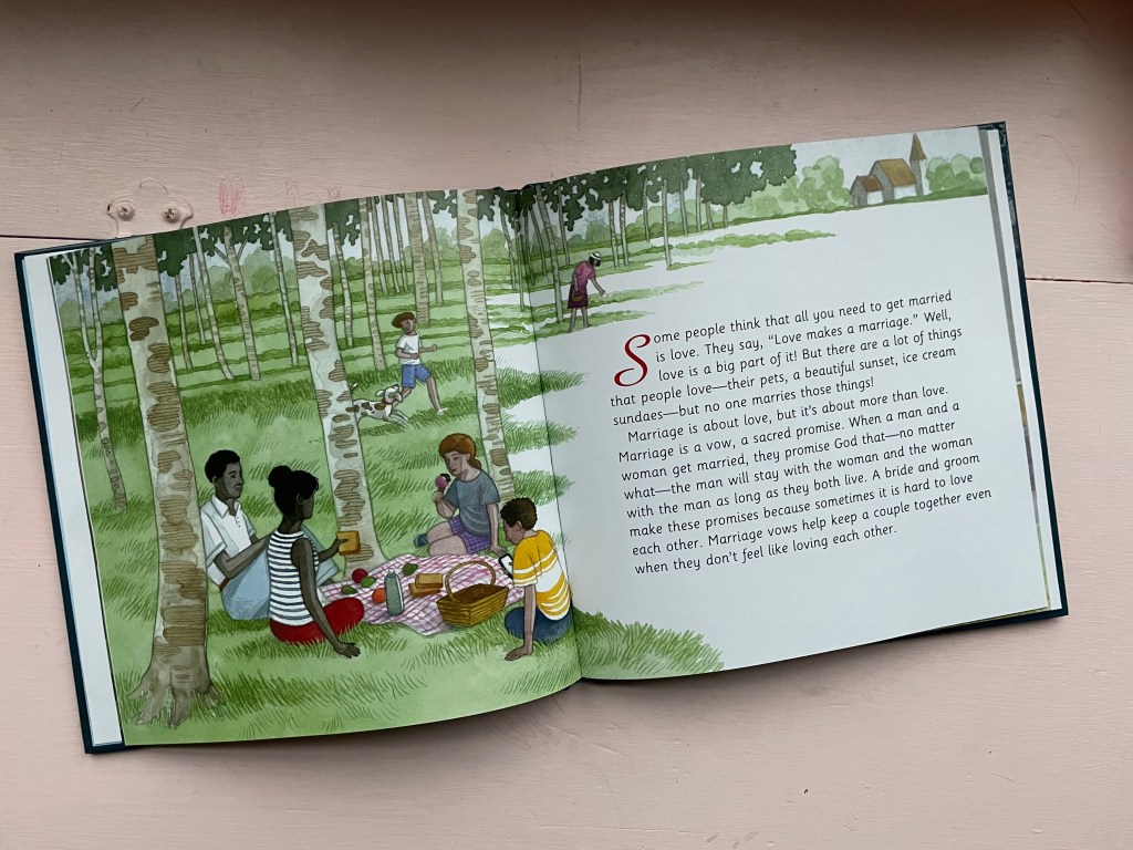 I also appreciate how Ortlund tells kids how not all countries agree on what marriage is, but that’s okay because we base our views on God’s unchanging truth. She gently addresses divorce and same-sex marriage in a loving, yet truthful, way.