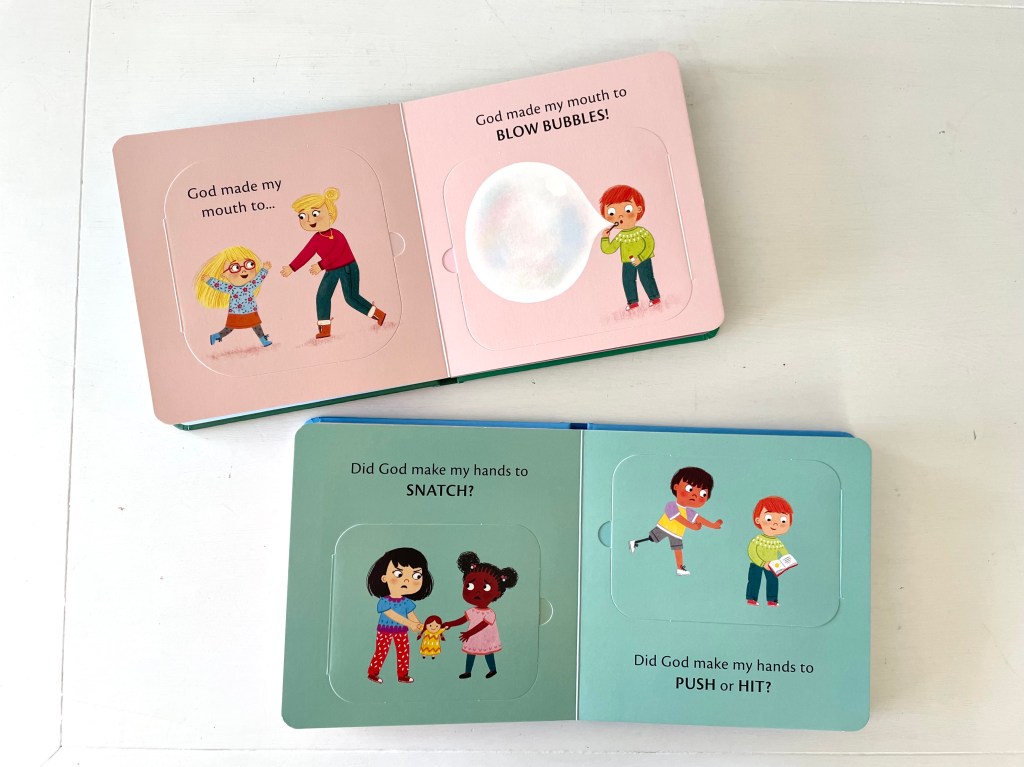 For example, in What Are Mouths For? we learn about how God made our mouth and all sorts of things we can do with our mouths. But God didn’t want us to our mouths to hurt others or to sin. Wedgeworth then shares how Jesus used his mouth, and points to the gospel. She shows how we can respond when we sin with our mouth and the hope that we have in Jesus.