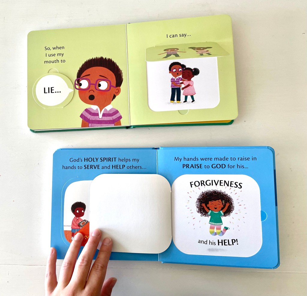Earlier this summer, Abbey Wedgeworth released the first two titles in the series Training Young Hearts. Both books are “Lift the flap” board books written with ages 0-4 in mind.