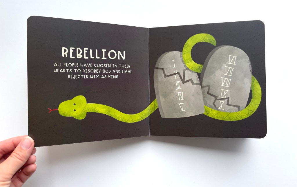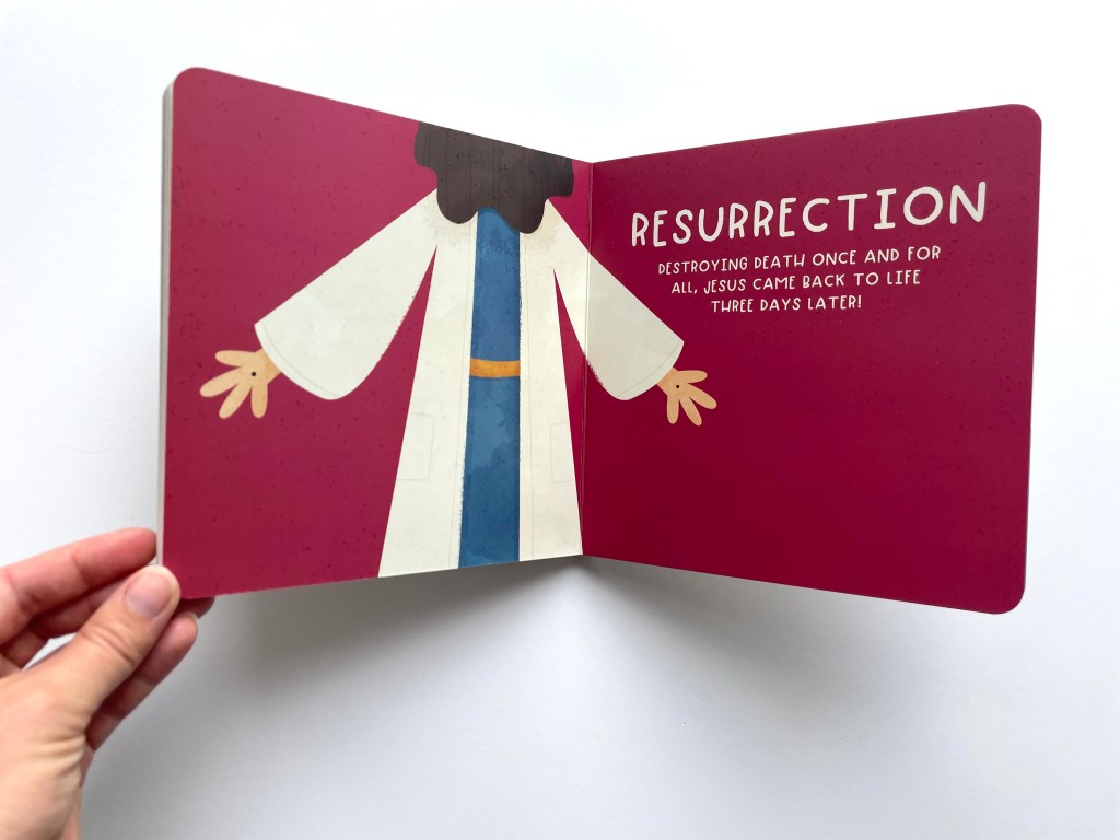 Crossway has a series of board books called Big Theology for Little Hearts which each introduce a big theological idea from the Bible to little kids. The Gospel walks kids through the gospel story highlighting words that are often heard surrounding it.