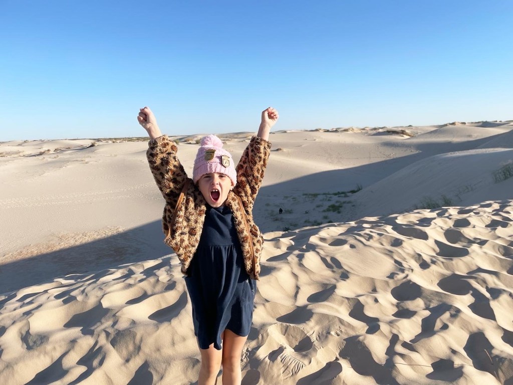 While our family was on a road trip in West Texas, we stopped by Monahans Sandhills State Park outside of Odessa so the kids could play. As soon as my youngest saw the sand dunes, her jaw dropped. She loves playing in sand and dirt, and she had the time of her life at Monahans.