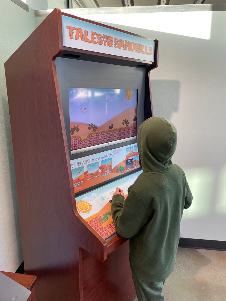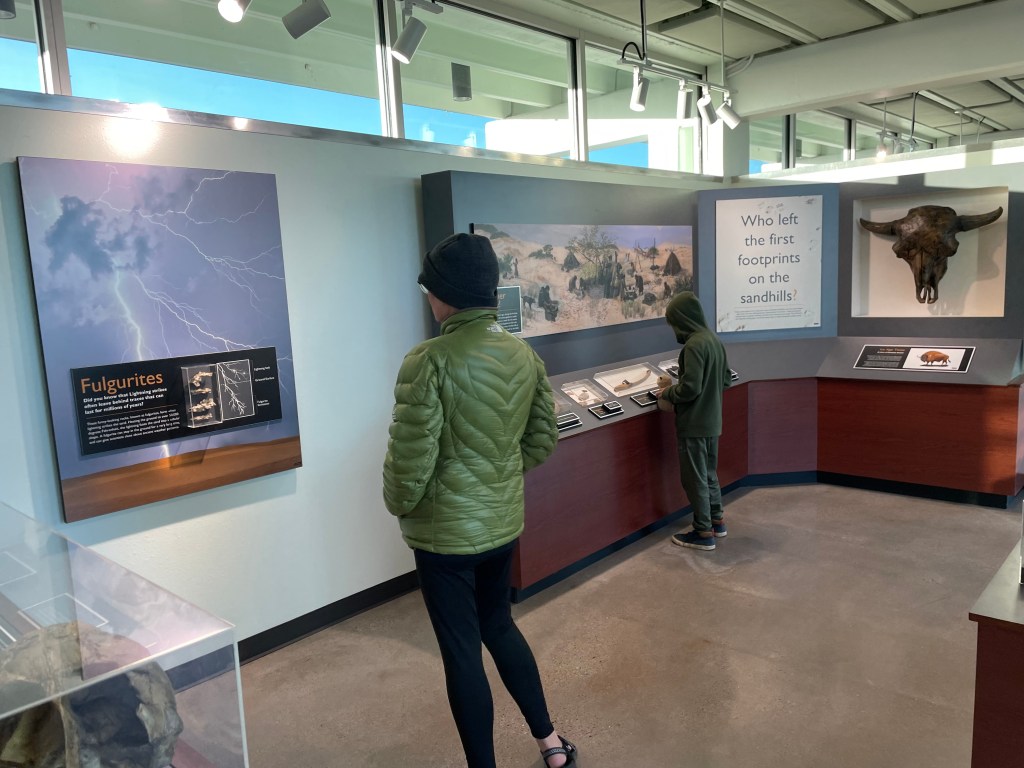 Monahans Sandhills State Park has one of the most beautiful park headquarters of all the parks we’ve been to. We loved how the building blended into the Chihuahuan Desert around it, and how you could view the desert from the big windows. They also had some fun exhibits, including fossils!