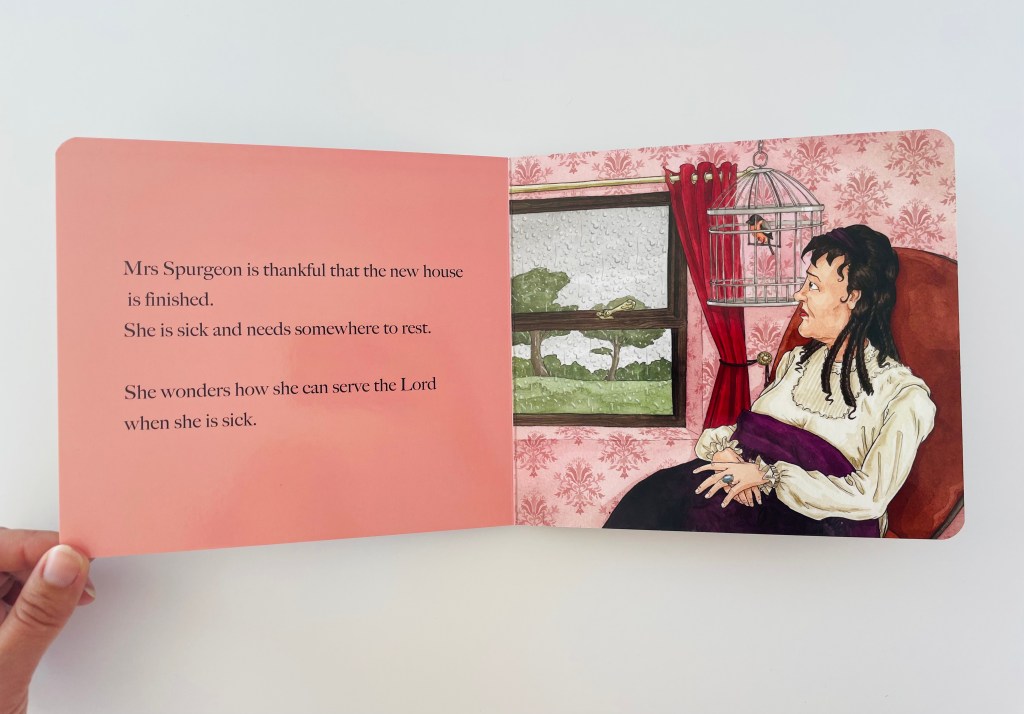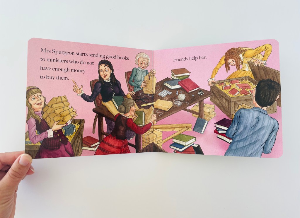 The Woman Who Loved to Give Books is about Susannah Spurgeon, the wife of the famous preacher Charles Spurgeon. We learn how Susannah’s involvement in her husband’s ministry changed after she fell ill, and how that illness led her to start a book ministry!