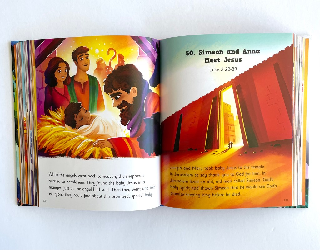 God’s Big Promises Bible Storybook contains both the Old and New Testament, sharing stories like “Elijah and the Fire” and “Philip and the Ethopian”. These are wonderful key stories for early Bible readers. They are indeed foundational stories, faithfully told.