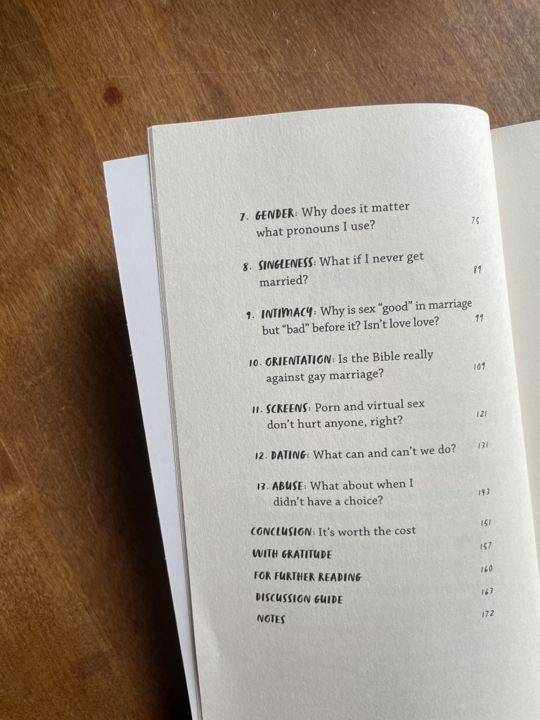 Kvamme lays a wonderful foundation in her chapter on body and identity. She explains how our bodies are sacred, that we can’t split our soul from our body, and of the identity that we were given by God. Our identity “does not depend on your sexual desires, your choices, or your feelings. It depends only on whether or not you belong to Christ–whether you accept his gift.”