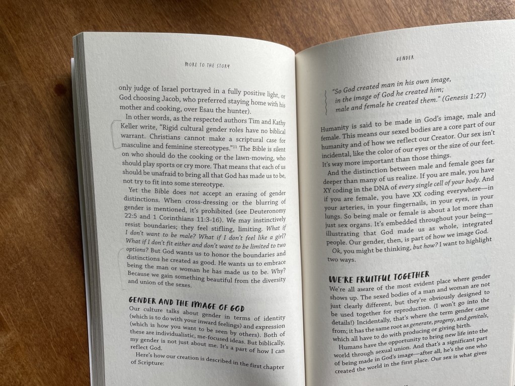 More to the Story is broken into two parts: the first explains the big story of the Bible, and the second responds to direct questions about the body, identity, desire, gender, singleness, intimacy, orientation, screens, dating, and abuse. Throughout her book, Kvamme reminds us of how God created our bodies and was the one who “thought up sex and romance,” and that marriage and sex were made to be pictures of our relationship with him.