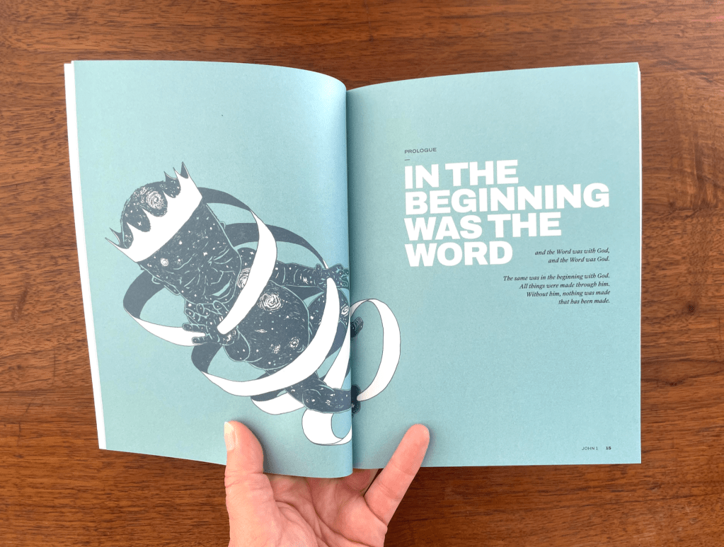 Formatted into accessible and easy-to-carry paperbacks, these books of the Bible are laid out more like a magazine. Interspersed through the text are fantastic drawings that illustrate and highlight different portions of the biblical story. What I love about these Fish Coin Press editions is that it reads like a story. There are not any verse numbers to break up the narrative or distract us from the words we are reading. The illustrations also complement well and capture the emotions and tone of the text well.